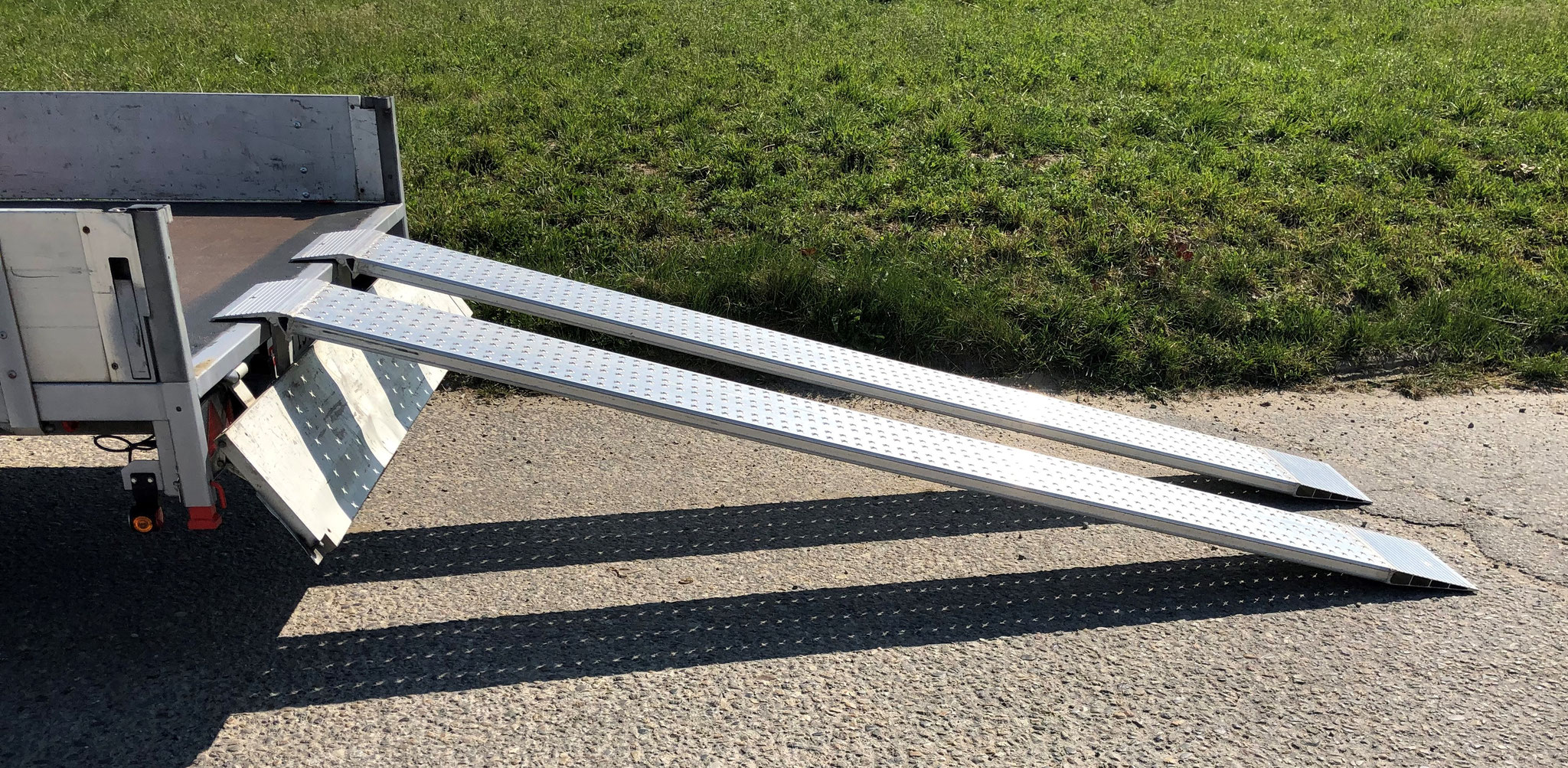 Dieser Anhänger ist so ausgerüstet, dass man mit dessen Inhalt einen Platz mit Gartenplatten oder Verbundsteinen ab der Vorplanie fertigstellen